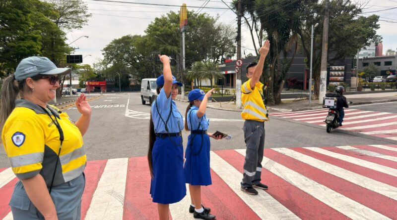 Guarda Mirim participa de ação educativa de travessia segura durante Semana Nacional do Trânsito em Mauá