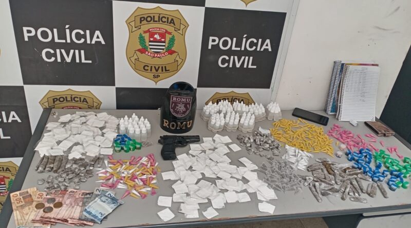 Entre os entorpecentes encontrados com a dupla estão papelotes de cocaína, crack, LSD e frascos de lança-perfume